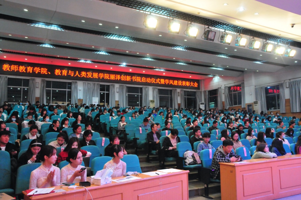 4月7日晚,教师教育学院、教育与人类发展学院丽泽创新书院启动仪式暨学风建设表彰大会于大学生活动中心二楼报告厅如期举行。本次大会以“启丽泽新篇,彰笃行之才”为主题,从“教之长者启新章”“学之先者传心得”“吾师同侪齐展望”三个篇章展开,学术交流活动与朗诵歌舞展示轮番登台亮相。