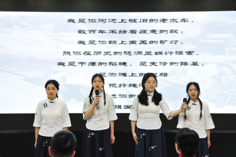 接下来的“诗抒胸臆,情传古今”——即兴朗诵环节,各组选手在短短十分钟准备时间内,便为我们呈上毫不逊于备稿朗诵的表演。《光的赞歌(节选)》《我为少男少女们歌唱》《相信未来》……一首又一首诗歌诉说着我们对中国的热爱,礼赞建党百年。