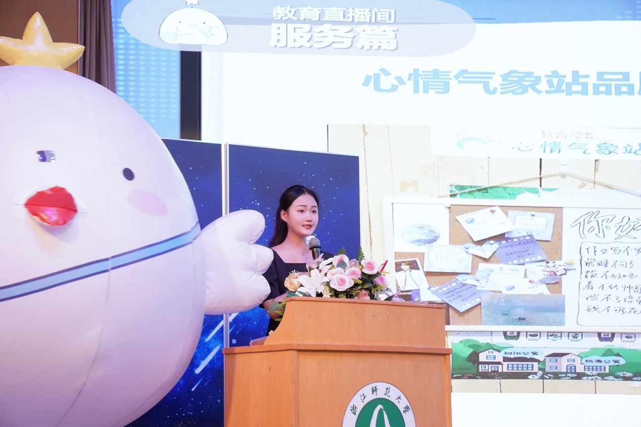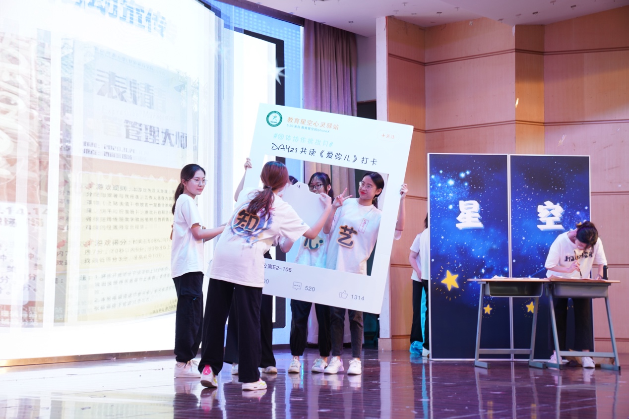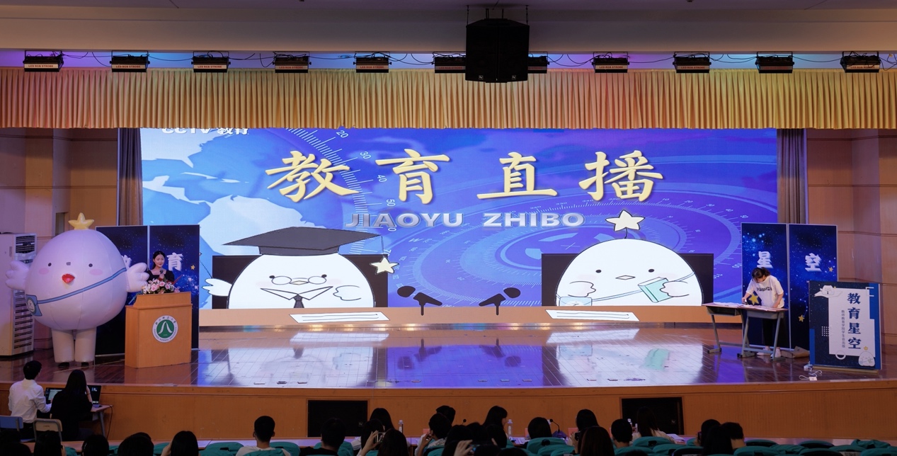 以教育直播间的形式,院学生会执行主席林珑昕扮演育小君,和教小星一起带领老师和同学走进《教育星空》这本书,回忆教育学生会一路走来的故事。