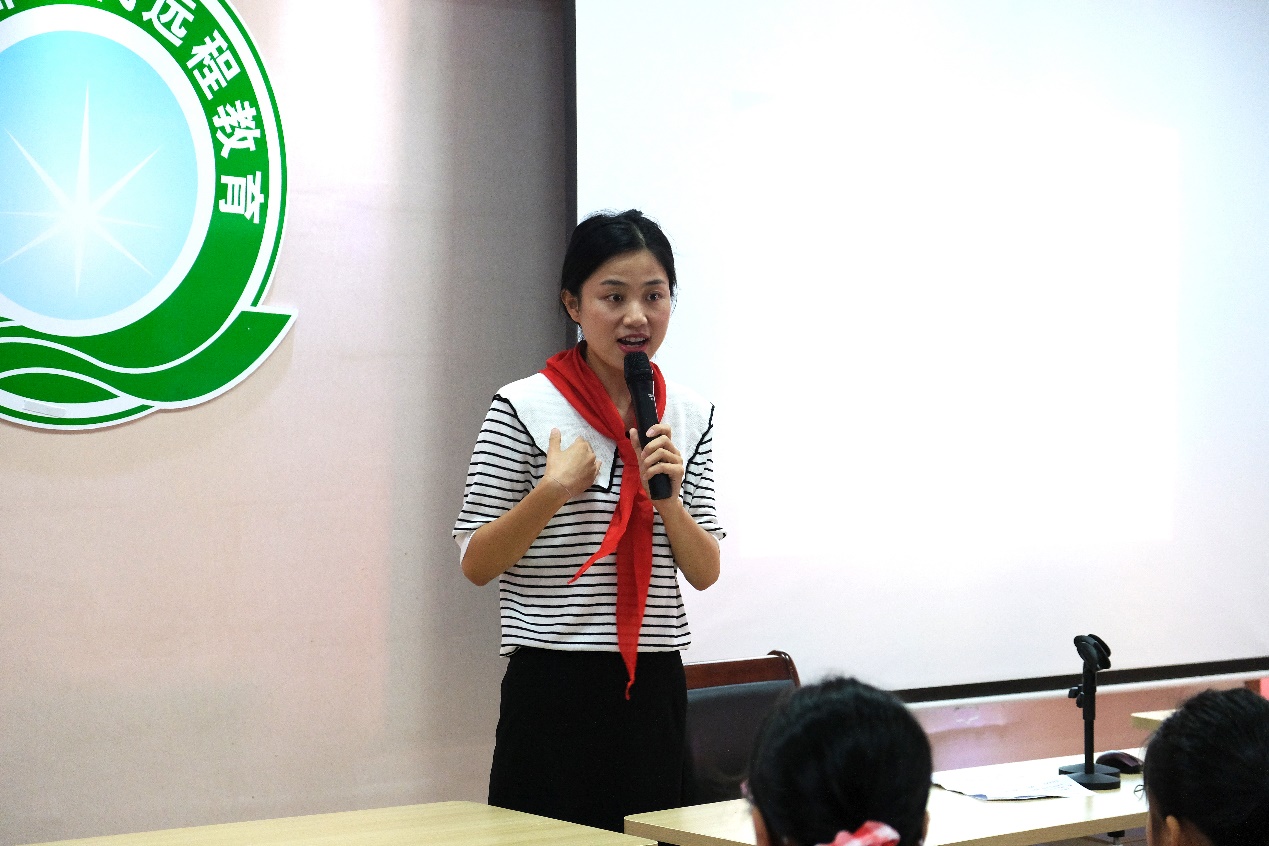 在这次讲座中,蒋老师注意到这些少先队员们对少先队的了解不是很充分,于是,她指导学生正确的敬礼和系红领巾方式,并请一位同学上来示范。同时,她用生动有趣的语言,介绍了少先队的队名、队旗和队徽,让同学们对少先队的知识有了更准确的认识。