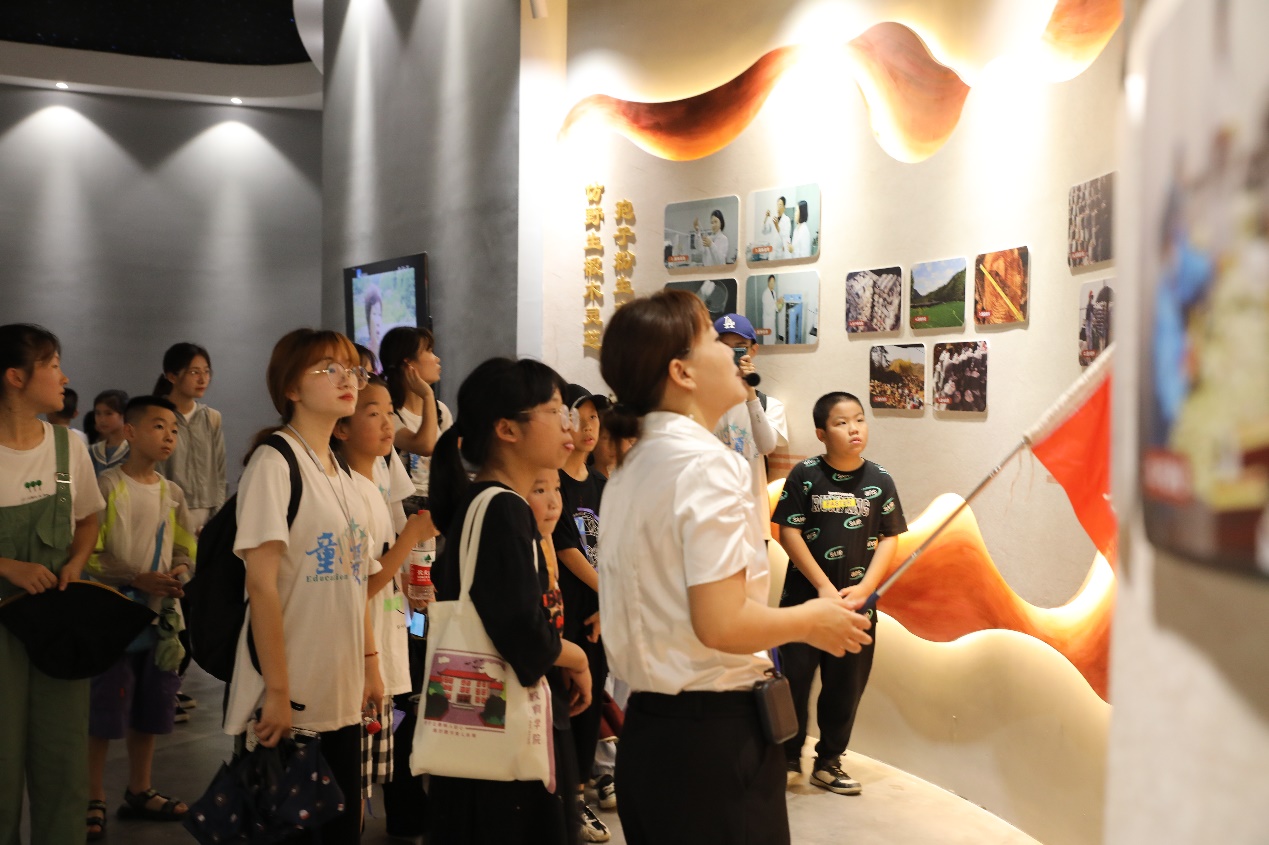 为了让小朋友们进一步了解家乡的灵芝文化,童心夏梦实践队带领小朋友们来到灵芝文化展厅。整个展厅按灵芝造型打造,偏暖色的灯光,随处可见的灵芝图案,让人有身临其境之感。