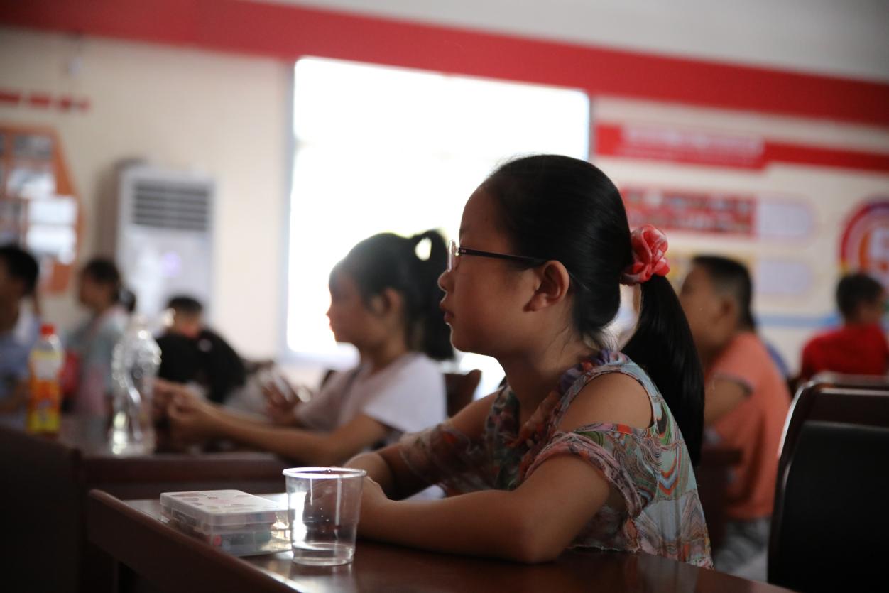 几次声乐课后,孩子们对音乐越来越感兴趣。在一次对夏令营学生的采访中,高年级的学员连馨小朋友对着镜头扬起了笑脸。“我最喜欢君君老师的声乐课,她会教我们唱歌!”连馨小朋友常在课间的休息时间和实践队成员们呆在一起,给大家表演红歌《弹起我心爱的土琵琶》。
