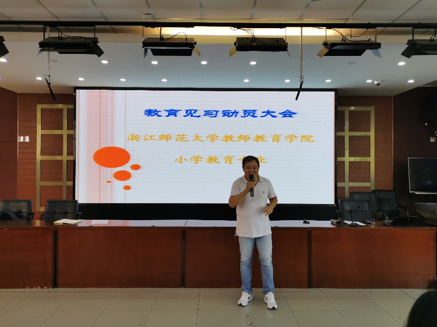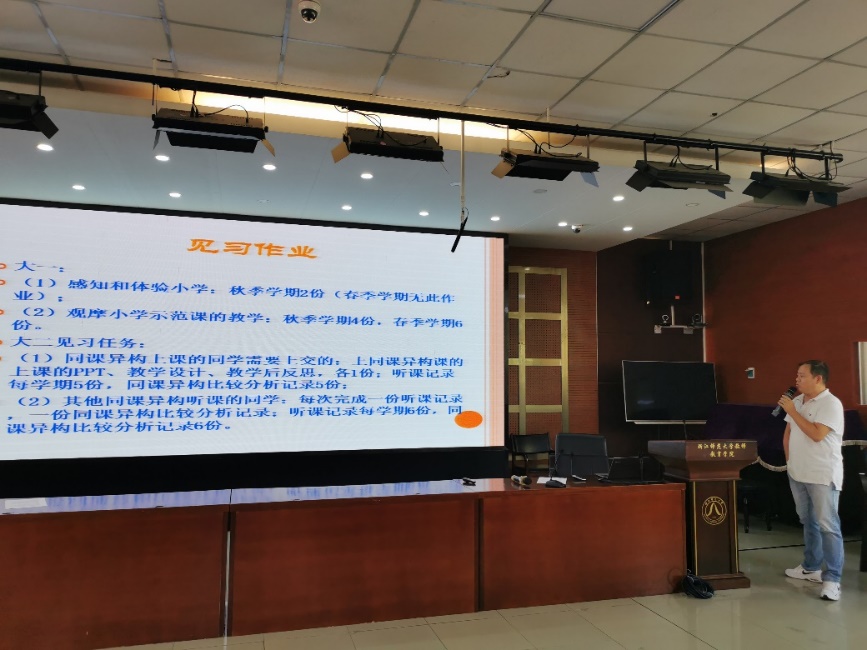 大会最后,陈殿兵老师总结梳理了大一、大二和大三不同年段的见习任务与要求,再次强调了同学们在整个见习阶段上所要注意的问题和事项。陈老师希望同学们能够展示出师大小教学子的精神风貌,持续推进与见习学校的良好合作关系,希望同学们能够学会交往、相互包容,并针对同学们在见习期间所要注意的安全事项问题进行了再次强调。