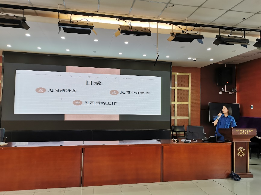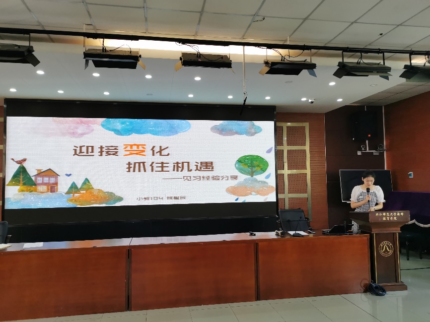 随后,小教203班卢雯迪、小教194班姚星辰和小教182班林安欣三位同学,分别针对大一、大二和大三的见习任务与要求,围绕见习前准备、见习注意事项和见习报告的撰写等事项向大家进行了经验分享。