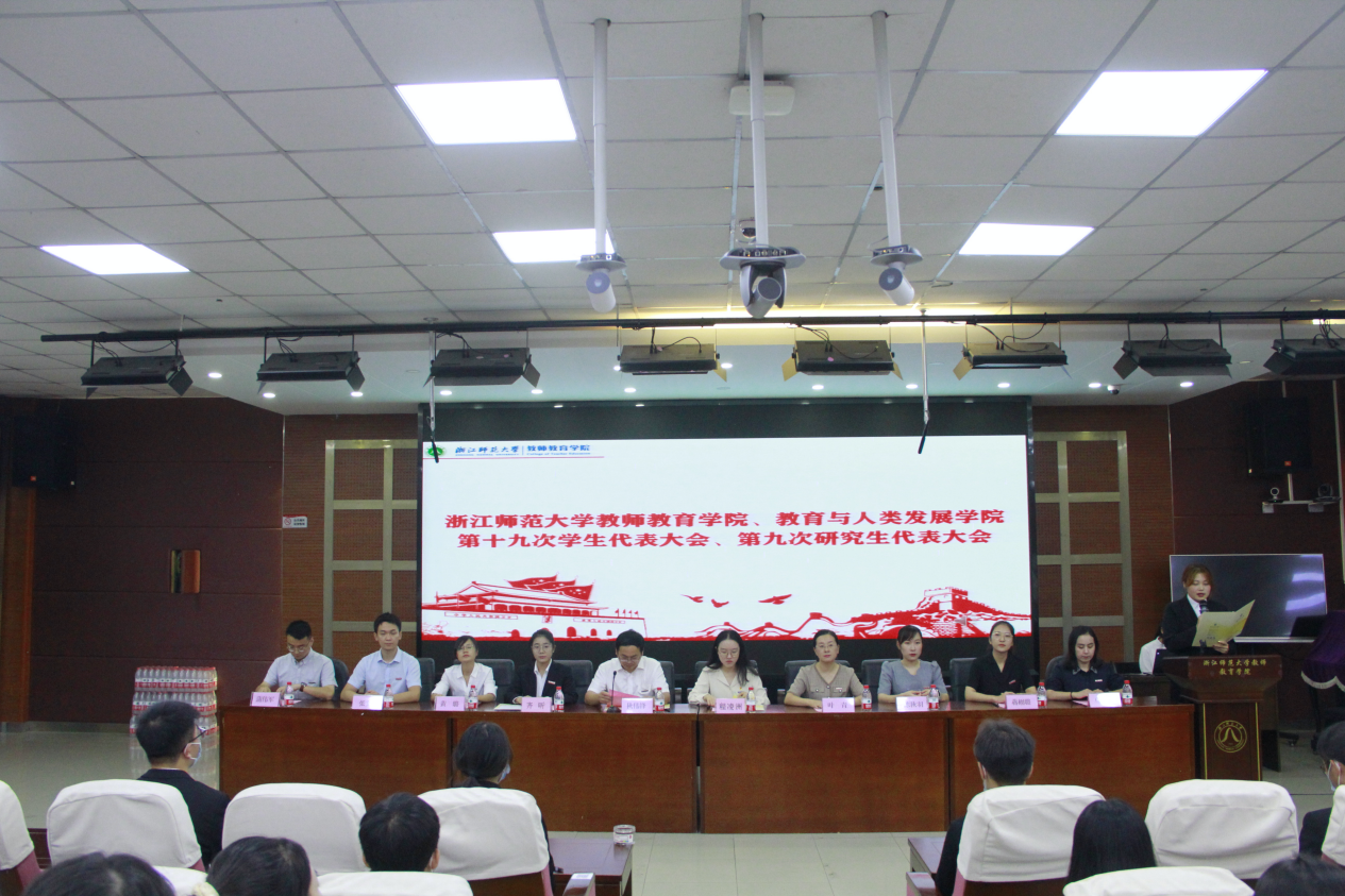 10月10日晚,浙江师范大学教师教育学院、教育与人类发展学院第十九次学生代表大会、第九次研究生代表大会于17幢112报告厅顺利举行。院党委副书记狄伟锋,校学生会执行主席程凌洲,校研究生会主席团代表齐昕,院团委书记兼学工办主任叶青,学工办辅导员黄璐、陈秋羽、张文潇、蒋栩璐、蒲伟军、马丽及49名研究生正式代表、92名本科生正式代表,共计141位本硕代表出席本次会议。