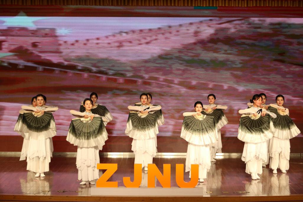 万疆,是红日初升于东方的信仰,也是祝愿祖国万寿无疆的期望。12位民族学生表演的舞蹈《万疆》,通过优美的国风舞蹈和悠扬的音乐,勾勒山河无恙的盛世景象,表现祖国大地的壮阔雄伟和中华儿女对祖国的热爱。