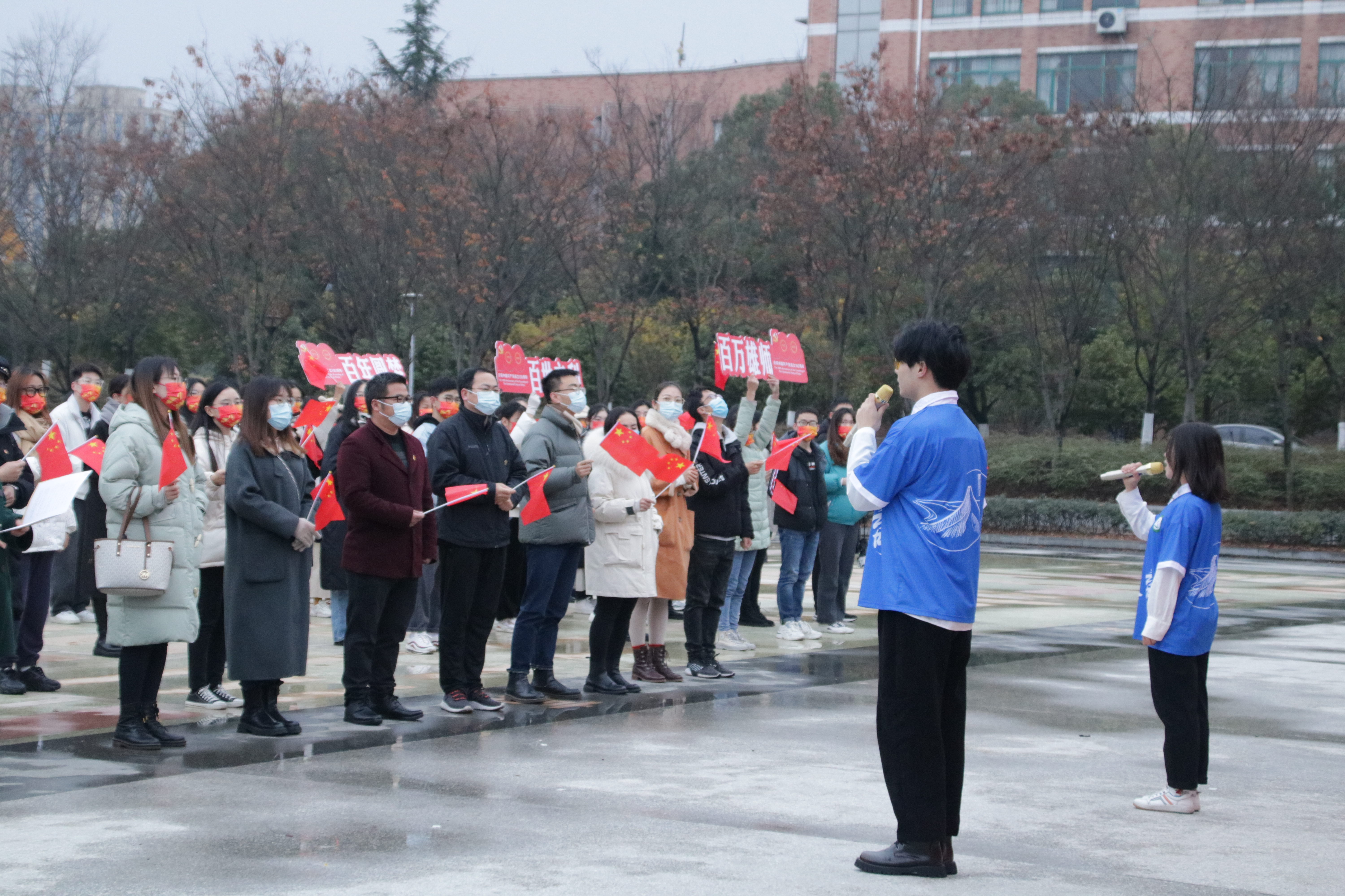 爱国奋斗新时代,不忘初心新征程,12月13日,由校党委学工部、人武部、学生处主办,教师教育学院承办的“国旗下,青年说”爱国主义主题教育于文化广场顺利举行。校学生处副处长陈仁伟老师、教师教育学院党委副书记狄伟锋老师、校学生处思政科王泽远老师、教师教育学院全体辅导员参加活动,院团委书记兼学工办主任叶青老师担任活动主持人,教师教育学院以及兄弟学院的共百余学生代表集体到场观礼。
