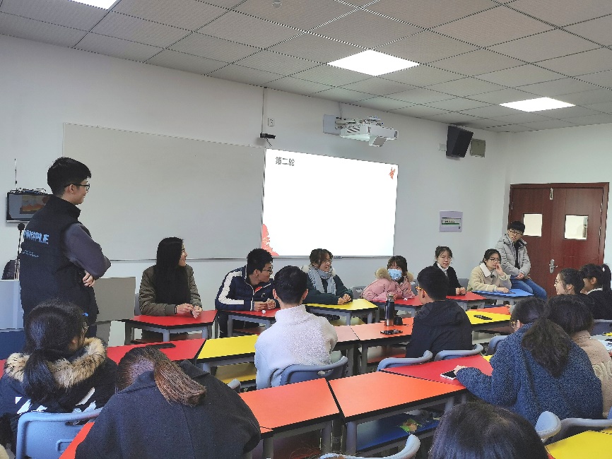 团日活动来到游戏环节——“谁是卧底”。在游戏过程中,同学们从第一组游戏中深刻感到了“阅览室”“图书馆”之间的不同,但在战火纷飞的年代,在西南联大,拥有一间安静、舒适的阅览室是无比宝贵的一件事情。而第二组游戏中,同学们仔细推敲“新民主主义革命”与“社会主义革命”,深入思考二者的区别与联系,回顾了我国共产党的百年光辉历程。