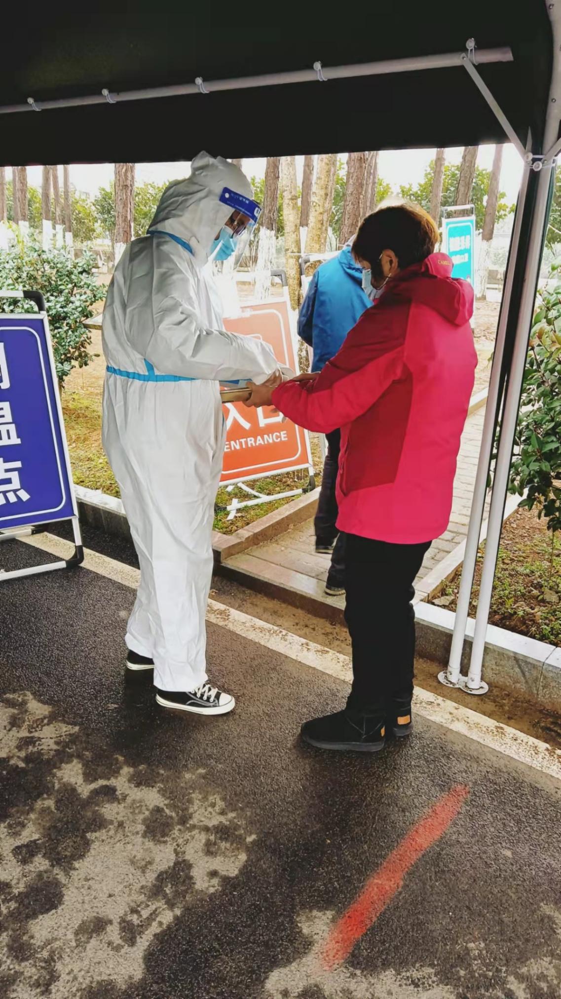 我在浙江省东阳市李宅党建广场的核酸检测点做志愿服务,和其他志愿者一起给前来做核酸的人员量体温、协助填写信息生成核酸二维码,给一些不太会使用手机的老年人耐心讲解操作过程,这是一件非常有意义的事儿,在寒假能够体验这样的志愿活动,也是对寒假时间的一种合理利用。