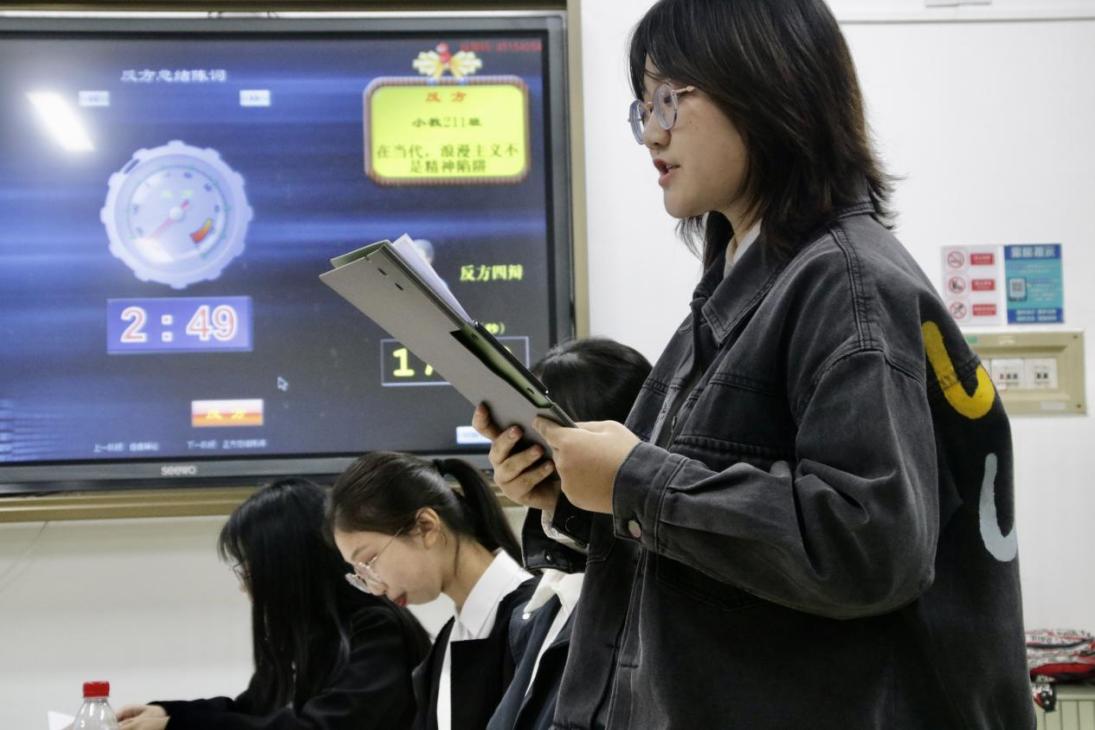 最终比赛进入了自由辩论环节,双方时间各自为4分钟。在此过程中,正反双方的唇枪舌战让现场火药味十足,正方强调“在当代,浪漫主义被资本裹挟让人追求并沉迷于伪仪式感,是精神陷阱”;反方反驳“浪漫主义只是在资本下被蒙蔽,其本质并不是精神陷阱”。他们字字珠玑,就辩题展开更深层次的辩论,个个积极对辩,将比赛推向最终的高潮。自由辩结束后,由双方四辩进行最后的陈词总结。