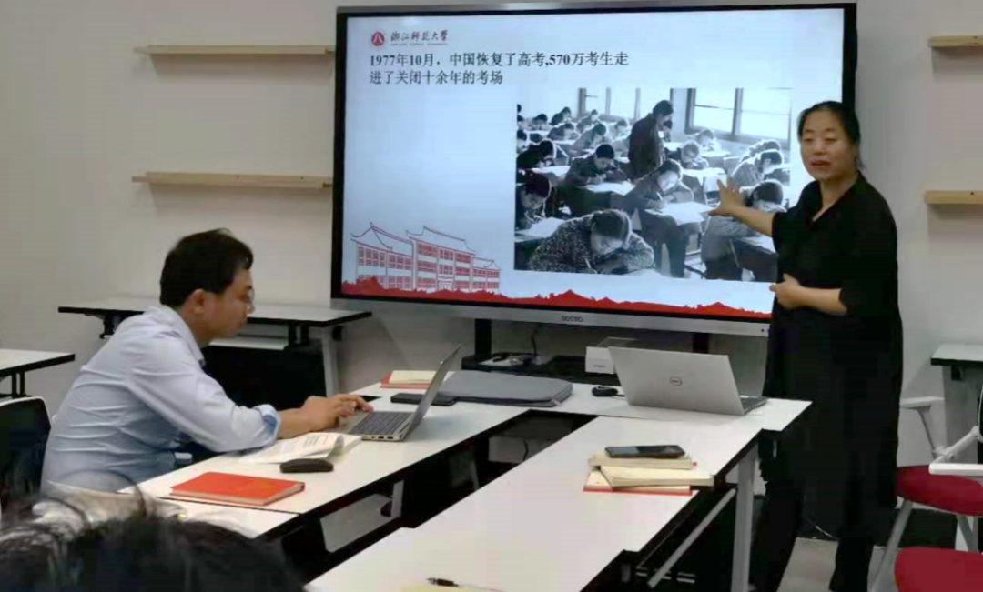 支部组织委员梁萍儿老师为全体党员梳理了我们国家改革开放三十年的教育方针的变迁,并搜集和整理了相关的照片和文件,图文并茂地和党员们一起回顾了学校、学院和专业在这三十年的发展历程。这使得党员教师们对所在单位的发展历史有了更深的认识,增强了事业发展的责任感和使命感。