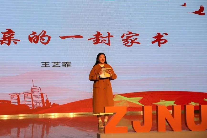 “父母之爱子,则为之计深远”,王艺霏同学朗诵《致父亲的一封家书》,身为战斗机飞行员的父亲为祖国航空国防事业奉献出一生,指引了“我”的前路,也指引着千千万万被守护着的在场的“我们”——以奋斗之我,不负韶华,勇立潮头。