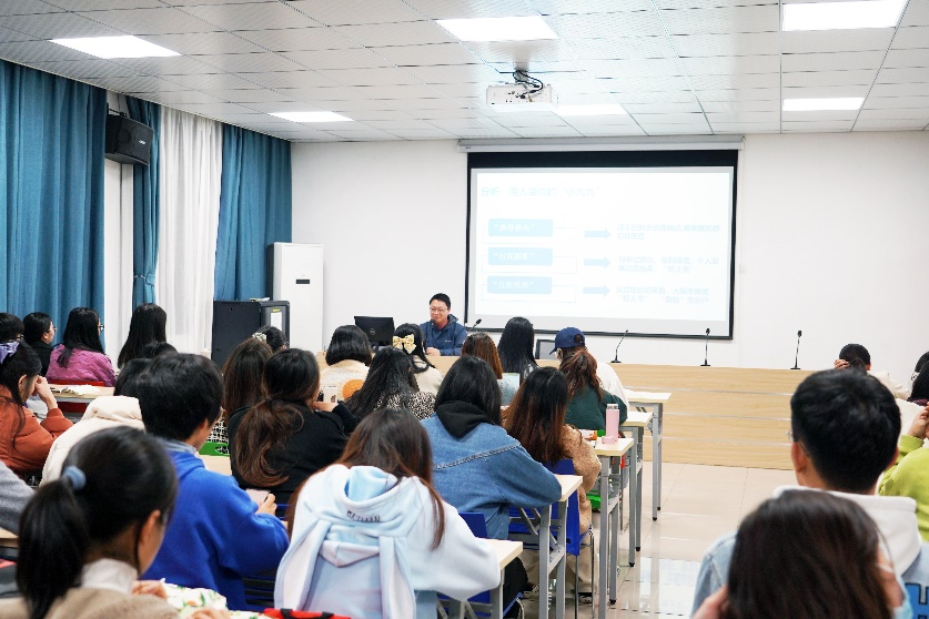会议伊始,彭老师为大家详细解析了用人单位的内在心理诉求。彭老师提醒大家,在求职前同学们应做好自我探索,明确自身的优势与劣势;与此同时,还应对外部工作环境有清晰且全面的认识。