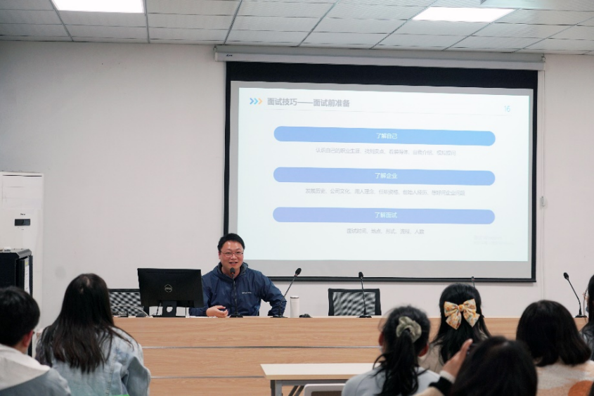 会议最后,彭老师结合个人经历强调了面试着装礼仪的重要性。他指出,“着装规范、大方体现了一个人的教养及对面试的重视程度。”本次交流会,同学们积极参与、认真学习,收获了许多面试干货。