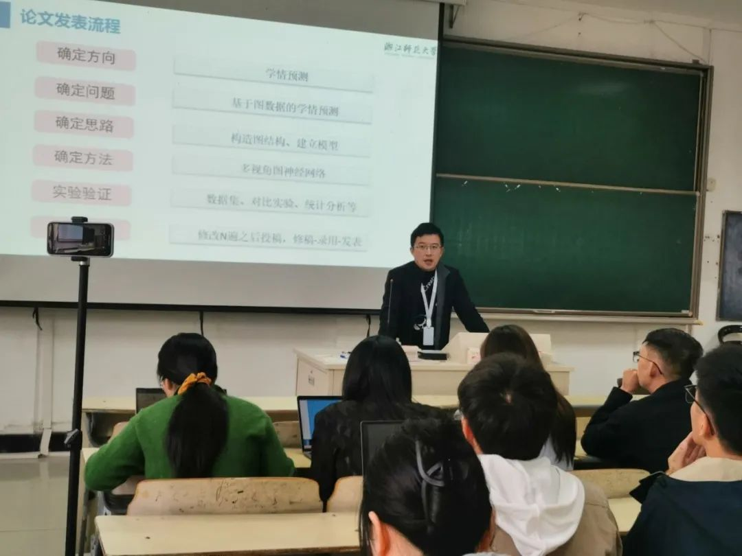 为营造浓郁的学术文化氛围,培养研究生科学精神,提高研究生的论文写作水平,明确论文撰写的学术规范和投稿的要求,11月18日下午,由教师教育学院教育技术学系教师党支部联合教育技术学硕士研究生党支部举办的“我为师生办实事”系列活动在17幢116教室顺利开展。本次活动特邀教育技术学系教师支部党员李明教授为与会同学就“论文写作及投稿”做相关指导,来自不同专业的研究生及高年级本科生前来学习。李老师精彩的讲说风趣幽默、妙语连珠,让同学们在一片欢声笑语中收获许多论文写作方面的实用技巧。