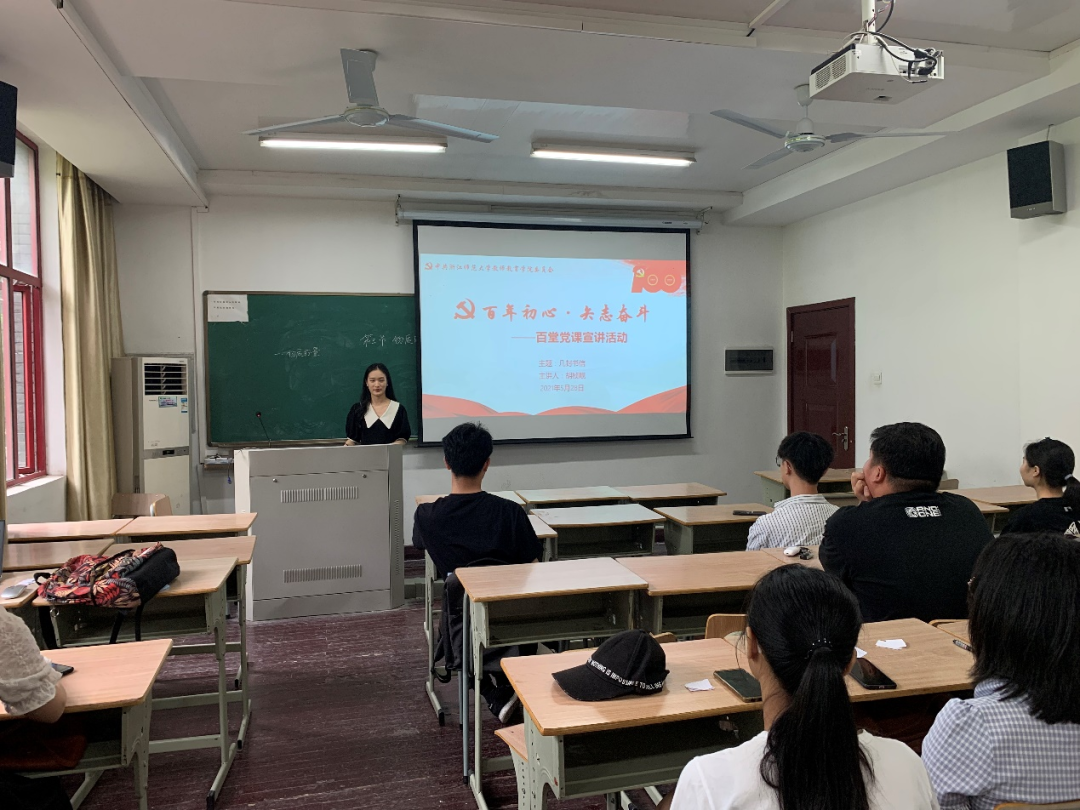 为深入学习贯彻习近平总书记在党史学习教育动员大会上的重要讲话精神和《中共中央关于在全党开展党史学习教育的通知》精神,5月27日下午,教师教育学院教育硕士研究生第四党支部组织委员胡桢靓紧紧围绕“几封书信——横坎头村红色文化强村路”的主题,在5幢204教室与全体支部党员分享了一堂别开生面的生动党课。