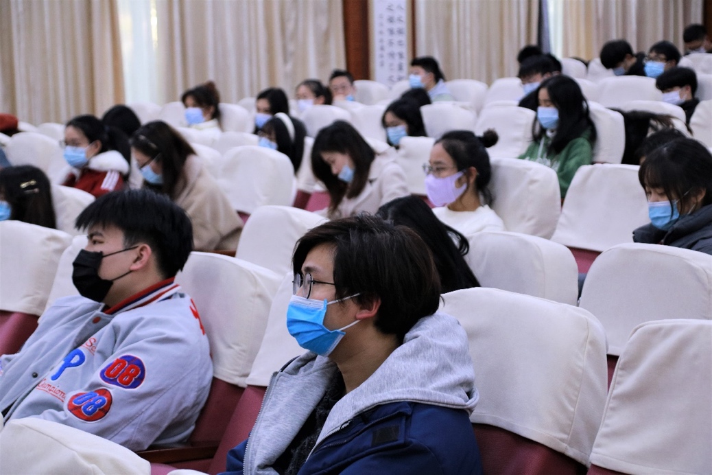 张文潇老师则对就业情况、防疫工作、意识形态把握再次做了细节的补充、强调与总结。在让同学们树立安全意识的同时,他强调,同学们在涉疫信息面前应学会甄别真假,不信谣、不传谣,在疫情下若有诉求或不满应及时汇报,避免随意宣泄不良情绪,造成不必要的舆情事件的发生。最后,张老师为同学们加油鼓劲,忠心祝愿同学们在今后的道路上得偿所愿,一路“旺”。