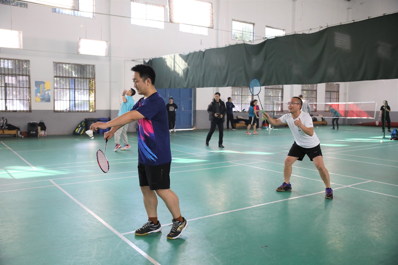 单打过后是男双的环节,比赛一开始,师生双方就开始了激烈的拼杀,高远球、扣球、劈杀、吊球等各路球技被他们演绎得淋漓尽致,比分在互相拉扯中不断被改写。最终,学生队以一局之差惜败,教师队再次获胜。