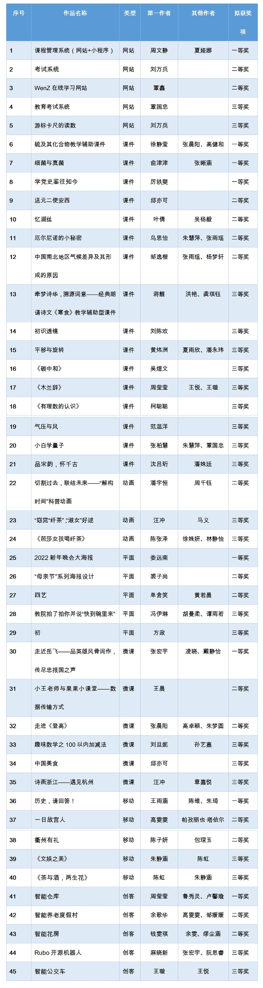 教师教育学院第七届多媒体作品设计竞赛拟获奖名单