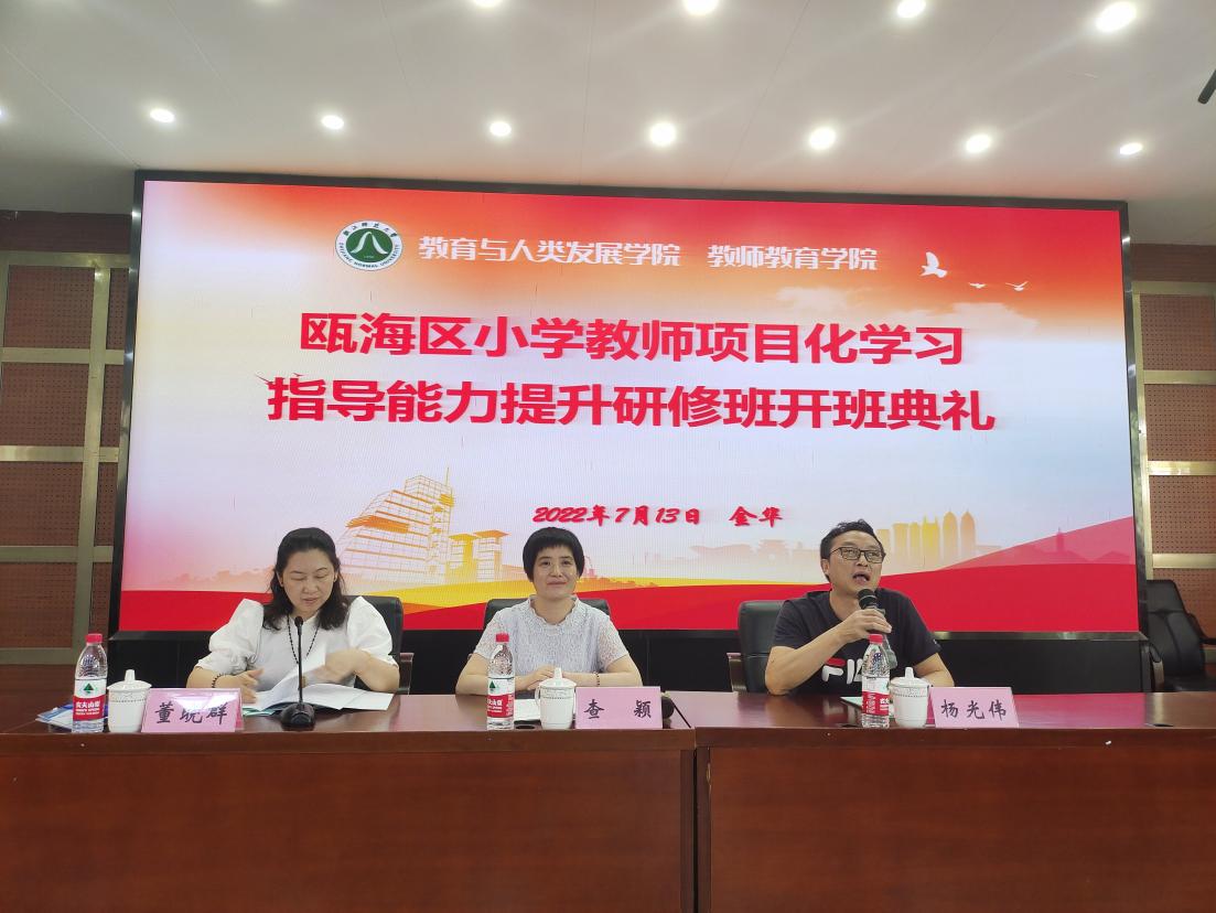 7月13日下午,浙江师范大学教师教育学院举办了瓯海区小学教师项目化学习指导能力提升研修班的开班典礼,kaiyun开云官方网页版党委书记查颖致辞,瓯海区教师发展中心(教育研究院)副院长董晓群讲话。瓯海区230多名小学骨干教师参加培训。