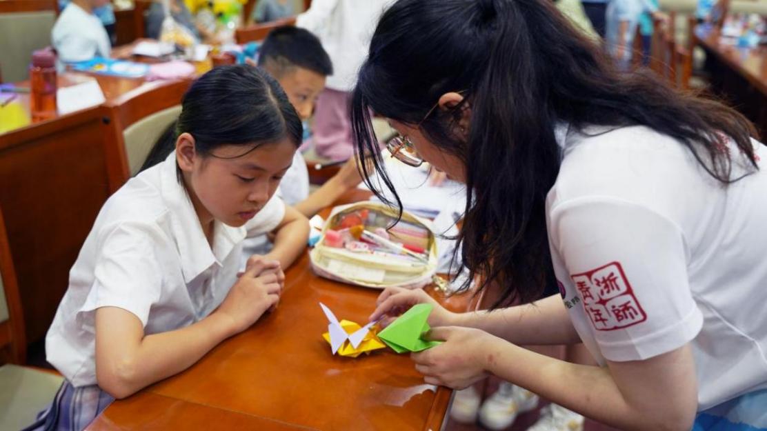 此外,在本次实践过程中,实践队员充分发挥各自的特长,开设了多种特色课,大致分为“趣味科普类”“手工制作类”“声乐歌舞类”“书画征文类”“观影演讲类”“研学体验类”六大板块,为金华公安“警二代”带去陪伴与温暖。