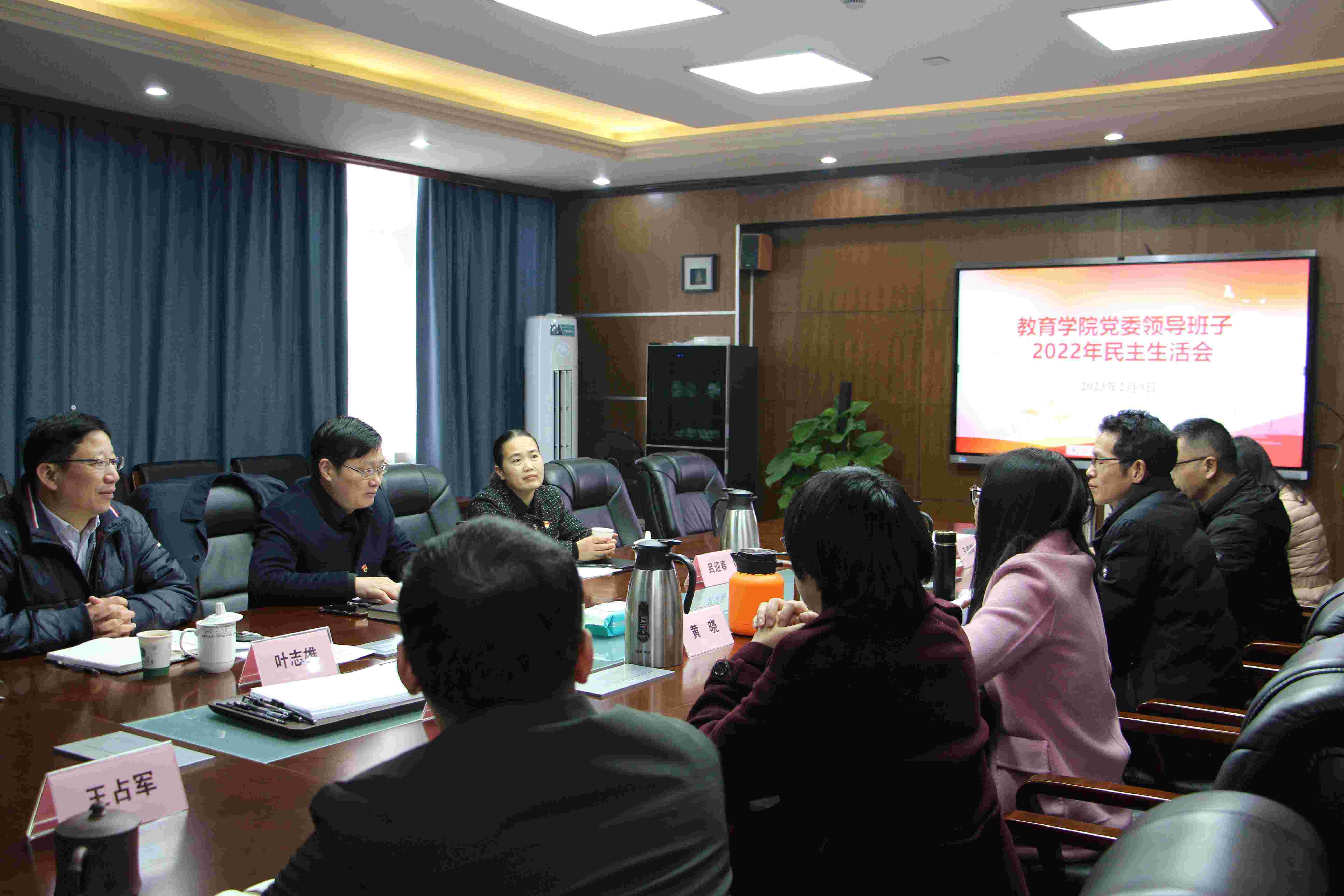 2月9日上午,教育学院党委班子2022年度民主生活会在17幢401会议室举行,校长蒋云良,校党委委员、组织部部长吕迎春,校纪委委员、工会常务副主席叶志雄莅临指导。会议由学院党委书记俞明祥主持,学院党委班子成员参加会议。
