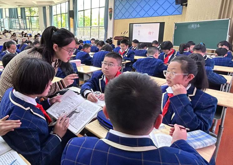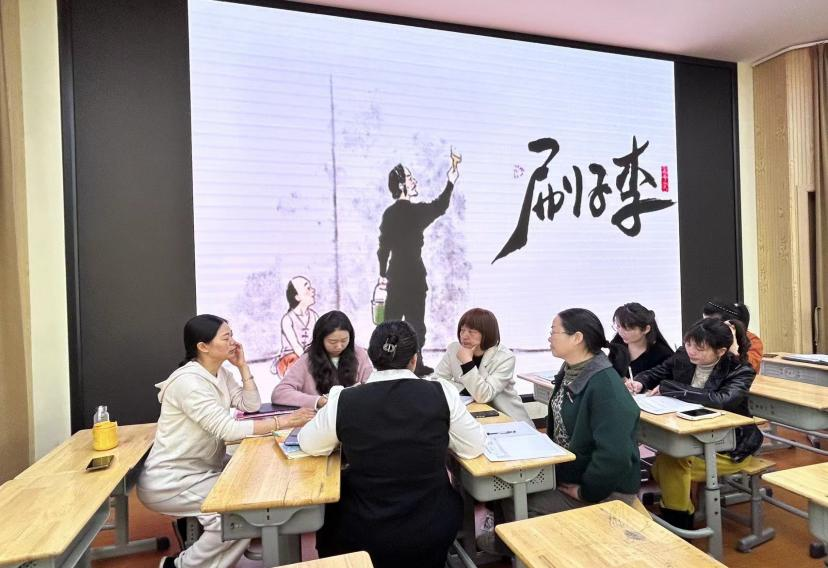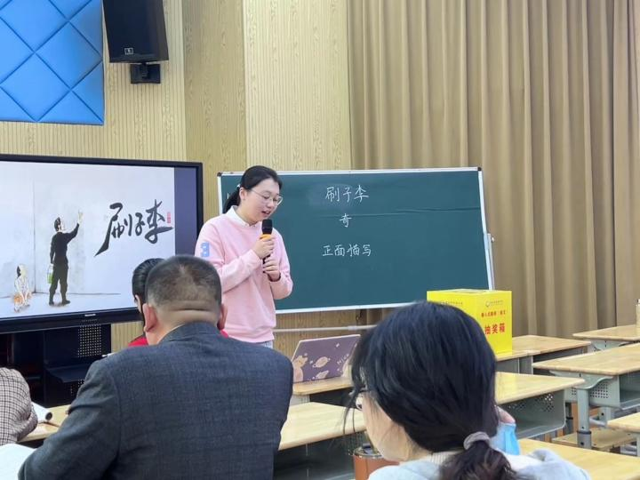 陈蕾西老师为此次盛宴拉开序幕。陈老师课前精心准备,认真设计教学环节,导入新颖巧妙,以冯骥才的《刷子李》为载体,紧紧围绕本单元语文要素,从文章字词到脉络结构,从读中领悟到文笔仿写,紧扣中心句,层层深入文本,带领学生深入剖析文章“风趣”之精髓,巧妙使用《语文课堂作业本》,减轻学生负担,将“教学评”深入融合。“双减”背景下,有利于学科核心素养在语文活动中落地,同时充分展示了秋小青年教师的风采。