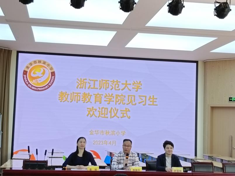 教育学院的带队老师叶亚林老师叶亚林代表浙师大教育学院向秋滨小学表示诚挚的感谢,她非常赞同秋滨小学的办学理念,希望见习生珍惜见习的机会,感受到秋小的阳光、运动、素质教育、全面发展,也要求同学们严守见习纪律,遵守浙师大与秋滨小学见习制度,高质量完成见习任务,多观察、勤实践、多思考。