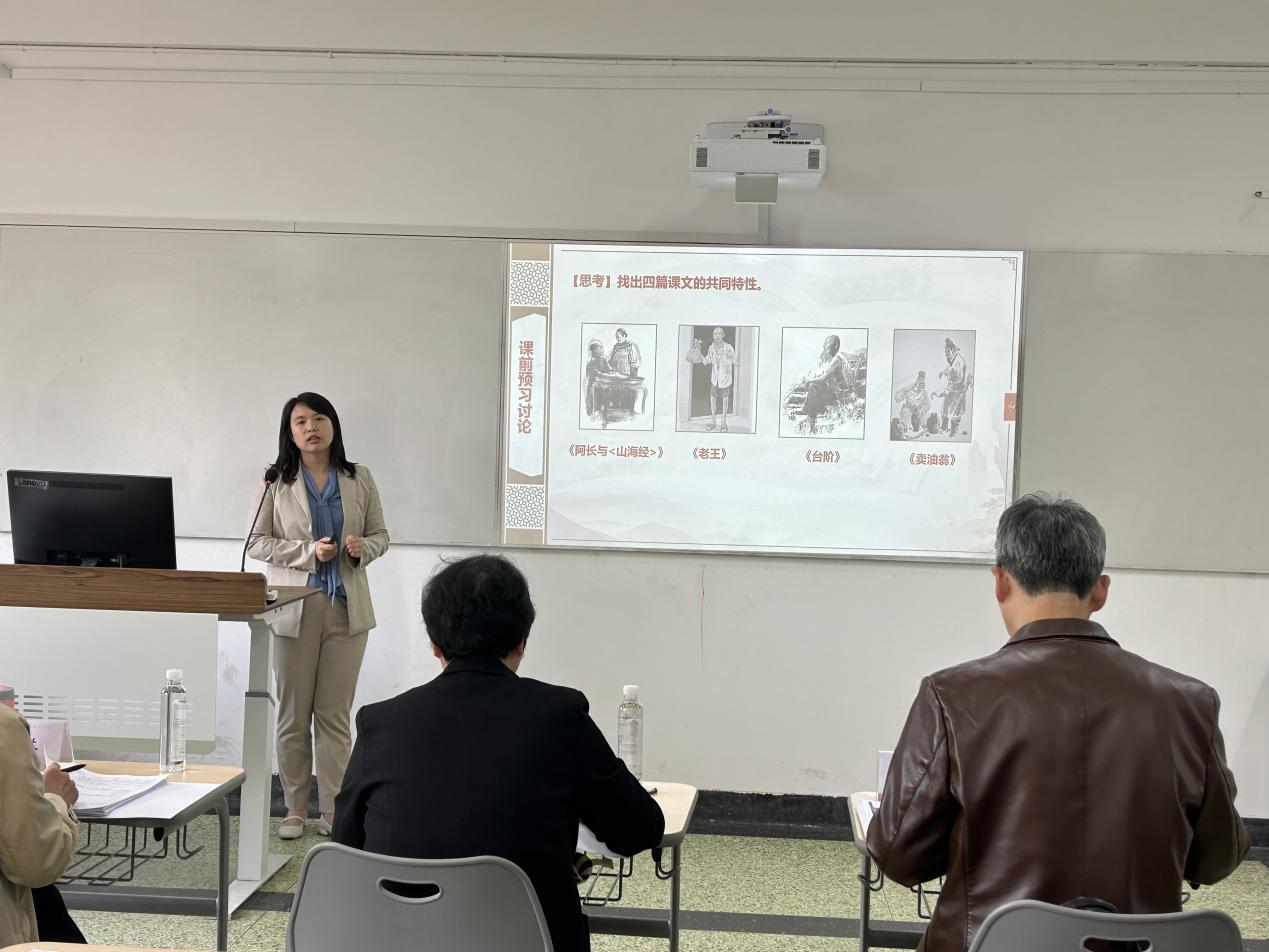 俞向军老师授课的题目是《多文本阅读教学设计》。她作为第一位参赛教师出场,准备充分,教态自然。她以七年级下册第三单元为例,生动而具体地介绍了多文本阅读教学设计的要诀,并指出阅读教学设计的目标应从学会阅读到通过阅读来学习。