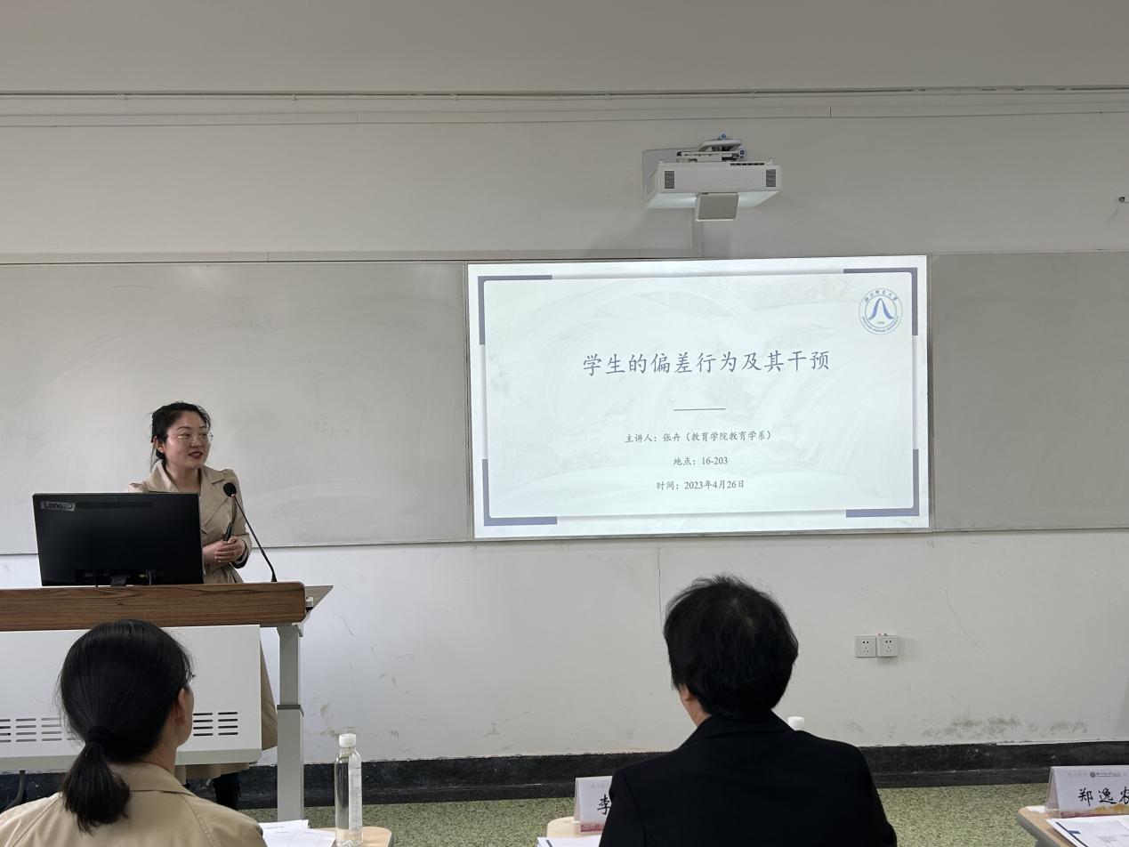 张卉老师授课的题目是《学生偏差行为及其干预》,不仅介绍了学生偏差行为的基本概念,详细讲解了学生偏差行为的具体表现与成因,还传授了不同类型偏差行为的处理技巧,并设计案例分析环节便于学生学以致用。