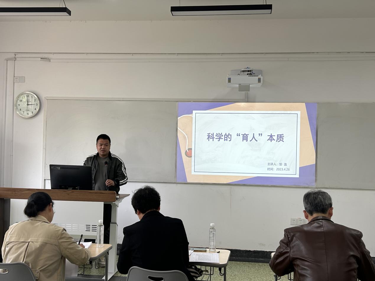 邹逸老师授课的题目是《科学的“育人”本质》,围绕“科学可以育人吗?科学有何育人价值?如何实现科学的“育人”价值?”三个问题对科学的“育人”本质进行了追问,并巧妙地融入课程思政内容,进而明晰了科学教育“育人”的根本使命。