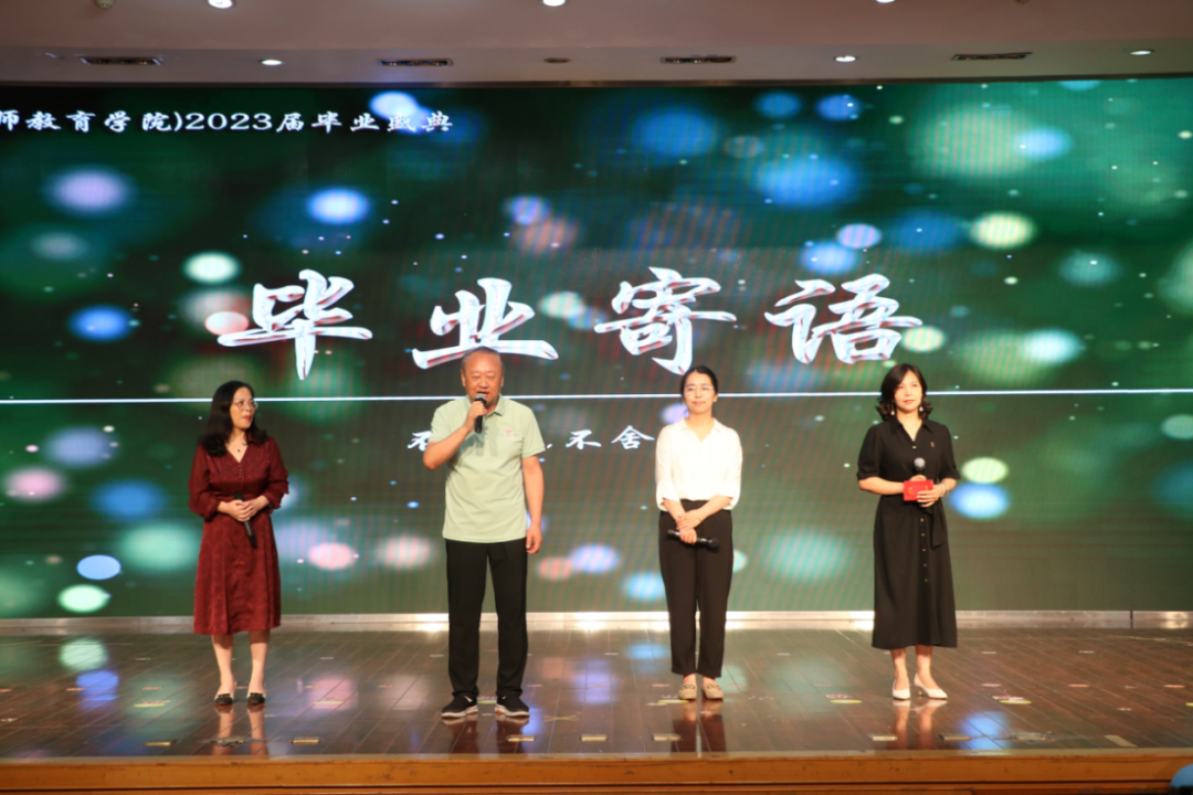 省师德先进个人张维忠老师、校优秀班主任管珏琪老师、研究生工作办公室刘冬仙老师、小学教育192班董彦杉家长纷纷为毕业生们送祝福。将师恩和亲恩铭记于心,同学们继续努力,不负期望。