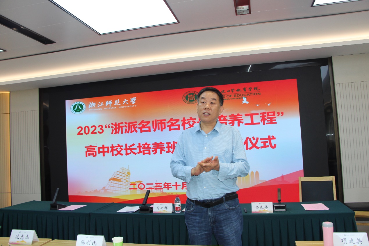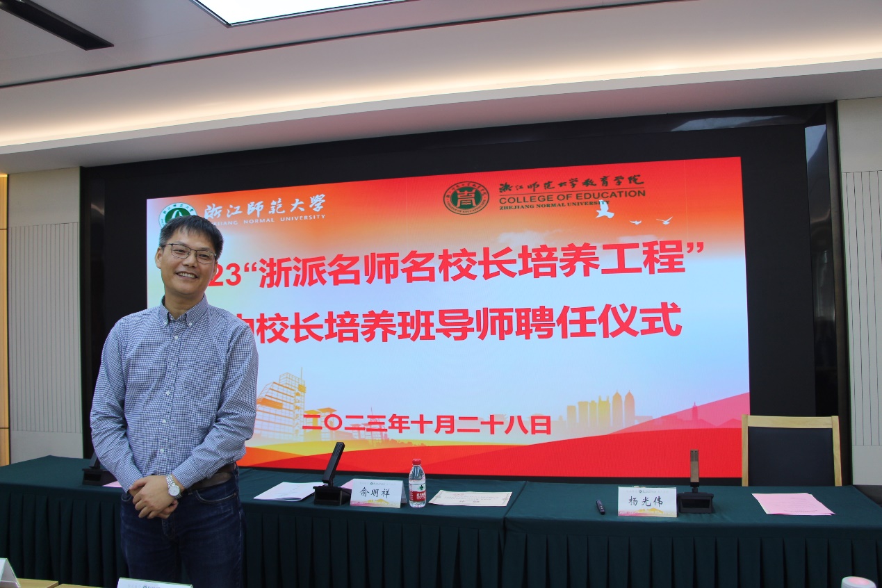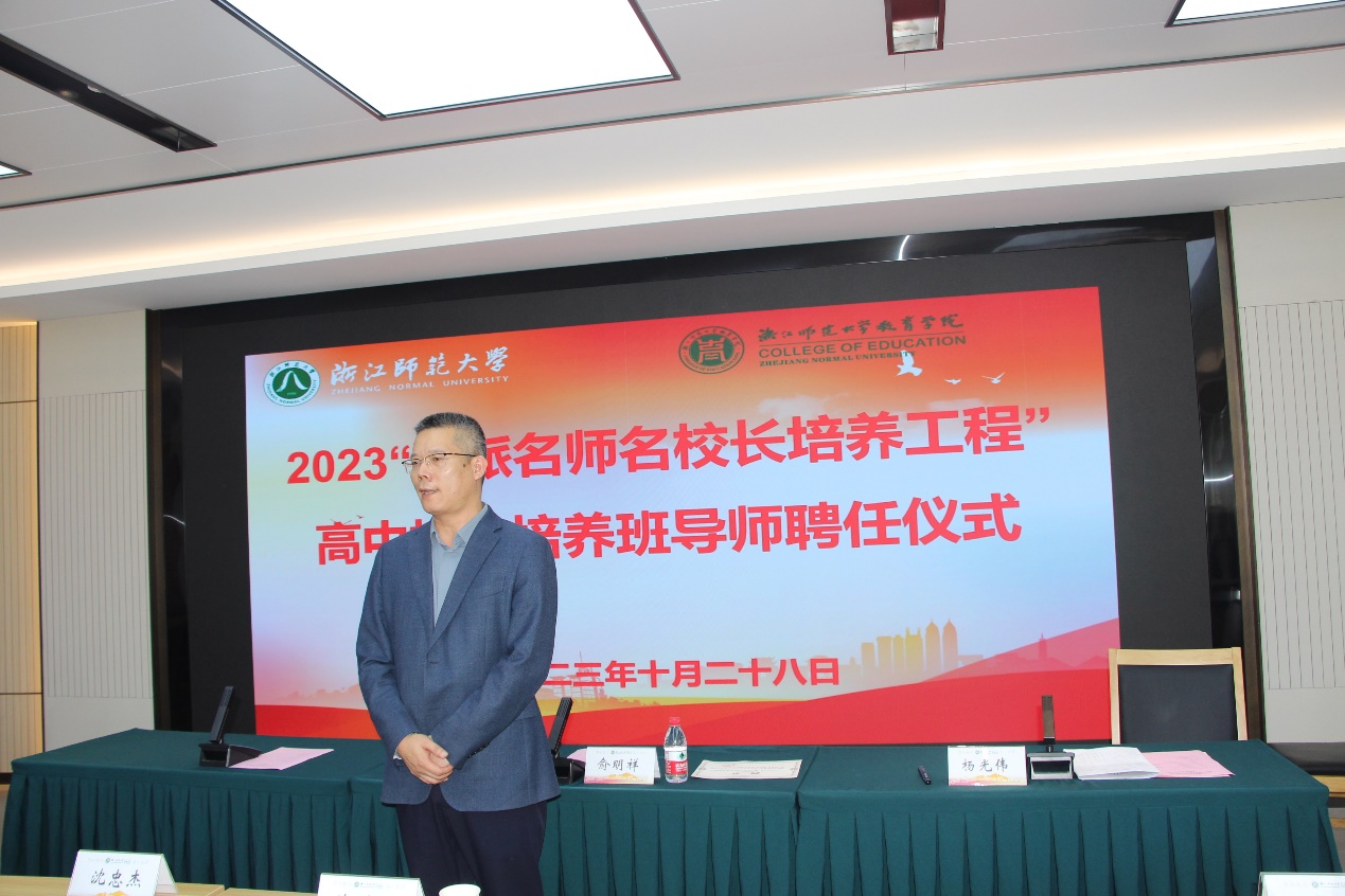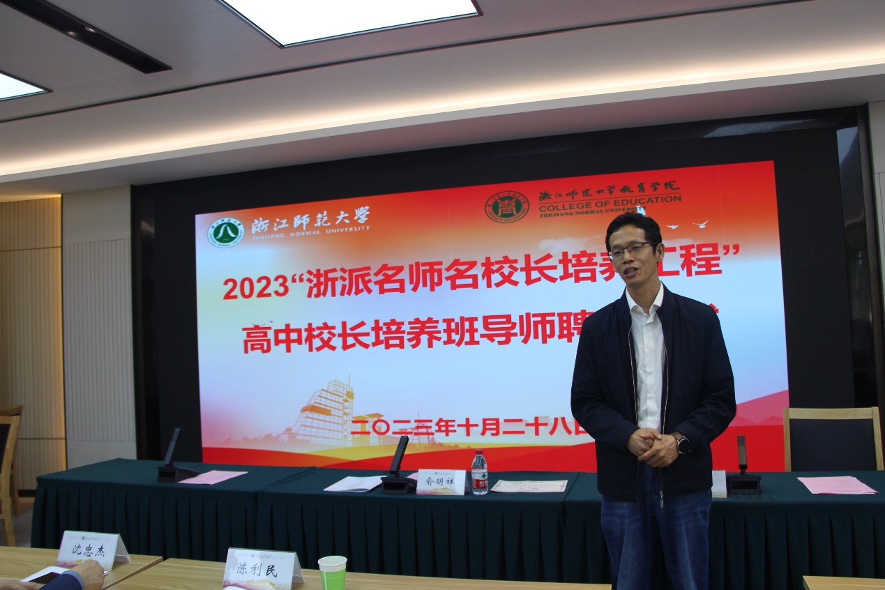 10月28日上午,2023“浙派名师名校长培养工程”高中校长导师聘任仪式在浙江师范大学隆重举行。教育学院党委书记俞明祥,理论导师、实践导师代表出席聘任仪式,仪式由教育学院社会服务中心主任杨光伟主持。