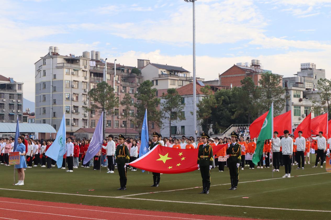 最后,庄严的国歌响起,全员肃立,高声合唱国歌,激动昂扬的歌声在操场回荡,崇敬而自豪的心情油然而生。开幕式结束,运动会各项事宜继续紧锣密鼓地推进,裁判、运动员和志愿者忙碌的身影在赛场穿梭着,令人翘首以盼的运动会即将步入正题。