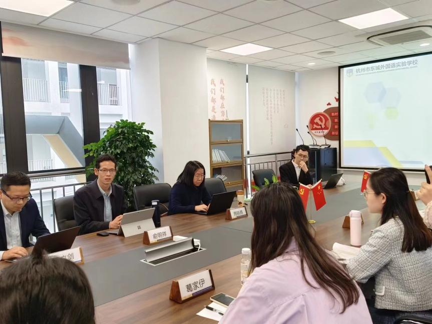 来到走访第三站,我院领导与杭州市东城外国语实验学校的领导们座谈交流。在会议中,四位实习生汇报了实习情况。据此,带队老师叶亚林、系主任周晓燕分别发言强调了实习工作的重要性,表达了对实习学校的感谢和对实习生的殷切期待。