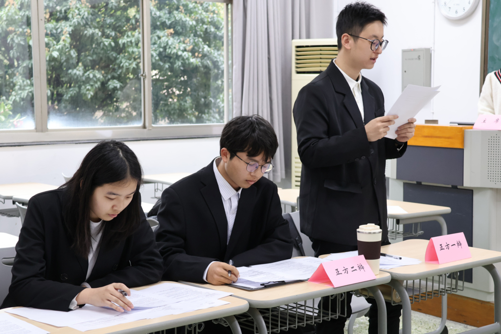 在评审环节,各场评委都对比赛进行了针对性点评。第一场比赛的评委指出,正方的定义范围更加宽泛,反方的“自由”底线较高;第二场比赛中,评委指出双方都运用了合理贴切的情境,但仍需进一步通俗易懂地比较辩题中的利弊;在第三场比赛,评委分别对正方和反方的论证作出了点评,同时为辩手们列举了可行的辩论技巧。经过评委的点评,同学们进一步加深对辩题的理解,收获诸多辩论的经验,可谓是受益匪浅。