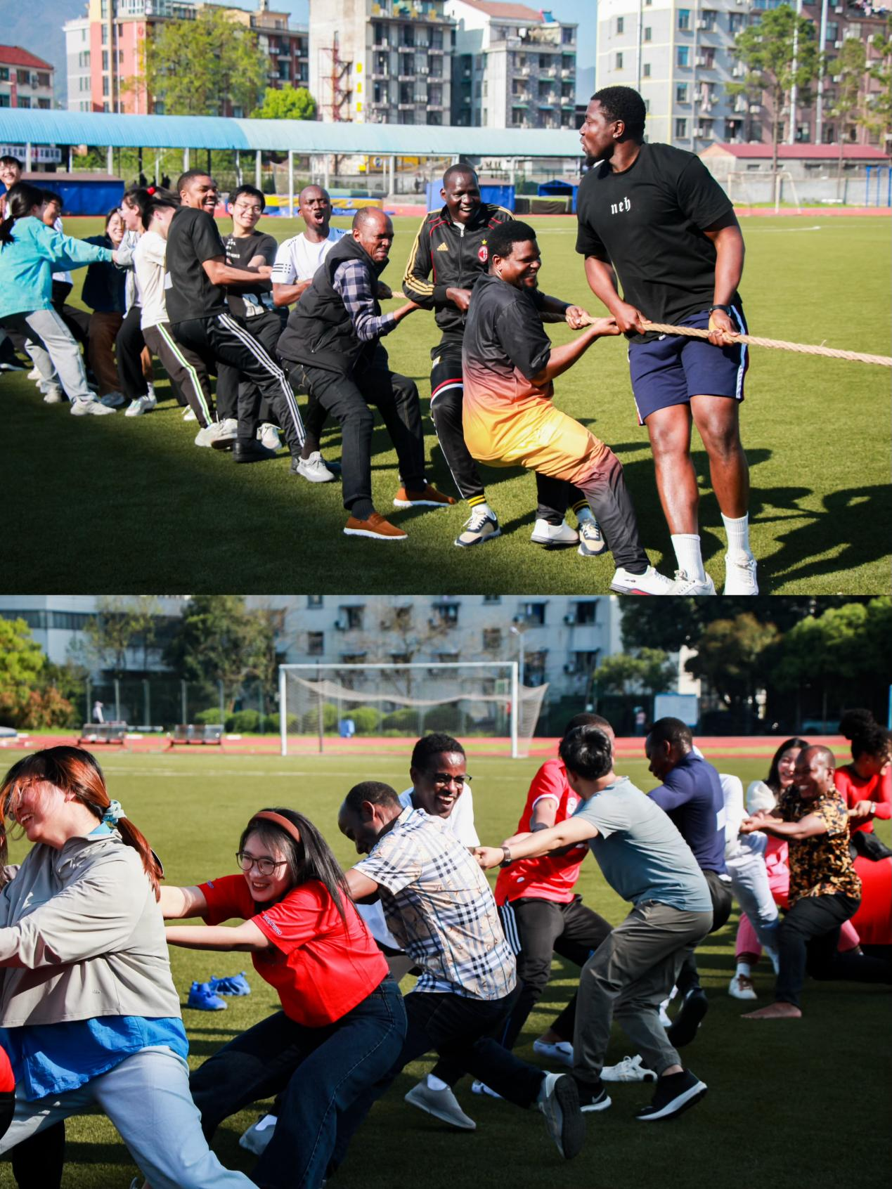 3月30日,教育学院在北田径场举行留学生趣味运动会。本次趣味运动会包含五个项目,即跳绳、运送乒乓球、撕名牌、背靠背运球、拔河,旨在丰富留学生的课余生活,帮助他们在运动中锻炼身体,增强体质。