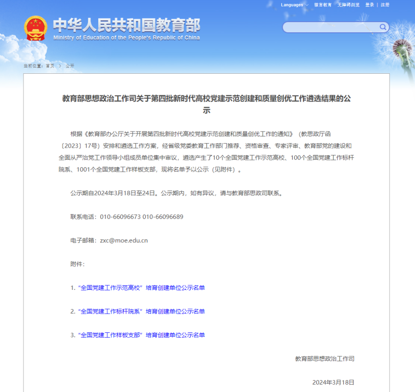 近日,教育部公布第四批新时代高校党建示范创建和质量创优工作结果,教育学院教育技术学系教师党支部入选“全国党建工作样板支部”培育创建单位。