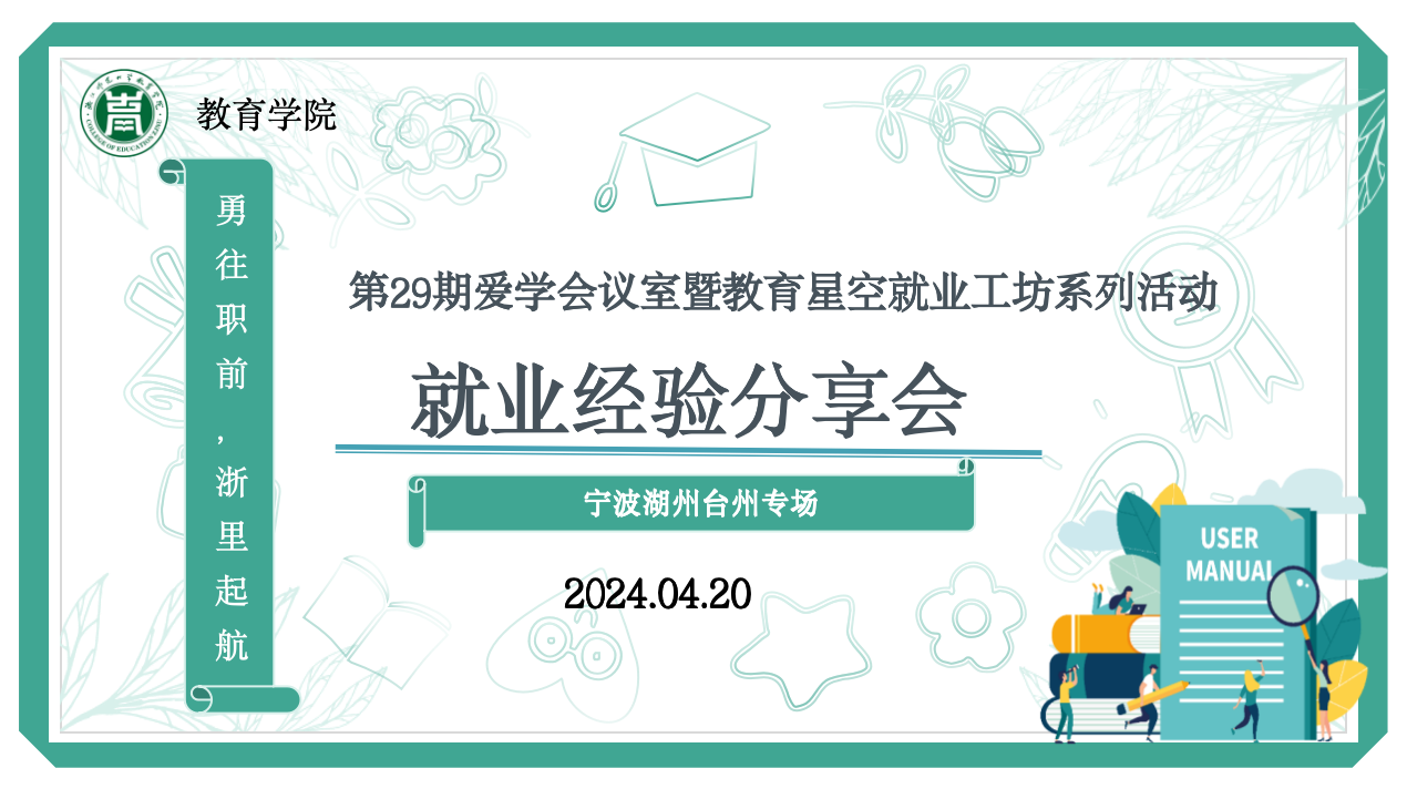 本次就业经验分享会“宁波湖州台州”专场到此圆满落幕。应佳怡与梁文娴两位就业英才的丰富经验,为教育学子展开了清晰的职业规划蓝图,助力学子们在未来的就业航程中扬帆起航,乘风破浪。