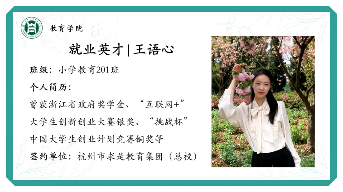为助力同学们正确把握求职流程、科学规划学习路径、全方位提升个人素质,4月21日晚上,教育星空就业工坊举办“爱学会议室”就业经验分享会“杭州绍兴嘉兴”专场,小学教育201班王语心、小学教育202班陈莲受邀分享求职经验,为同学们指点迷津。