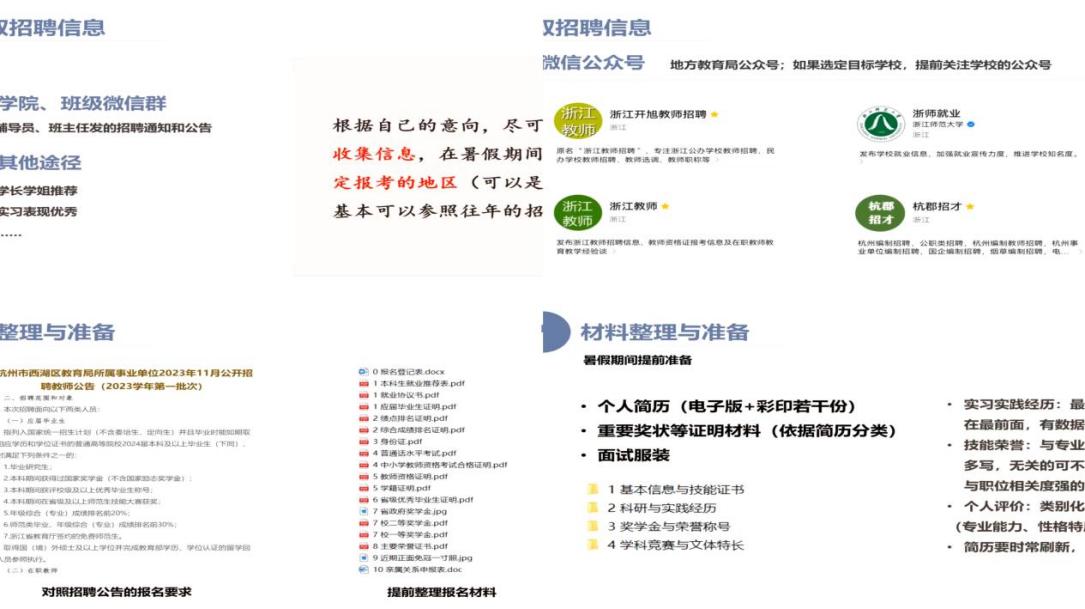 王语心从简历制作、备考技巧等方面展开,向同学们分享了她参与杭州教师招聘的宝贵经验。她指出,制作简历可以从实习经历、技能荣誉、个人评价等方面入手,其中实习经历格外重要。王语心建议同学们有意识地积累个人经验,提早制作并不断更新简历。最后,她提醒同学们提前对照心仪单位的公告比对简历,在大学期间树立目标,向着求职要求不断前进。