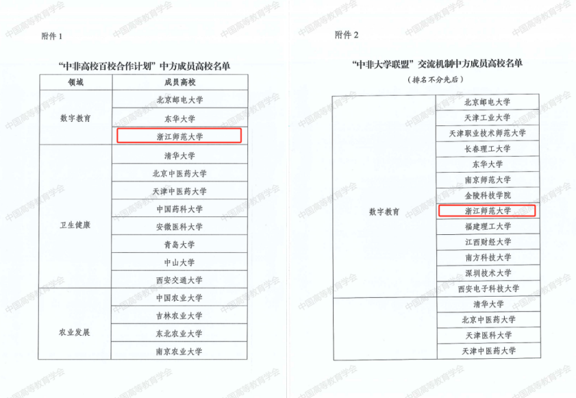 近日,在教育部国际合作与交流司指导下,中国高等教育学会组织开展申报工作,经资格审查、会议评选及公示,50所高校入选“中非高校百校合作计划”中方成员高校,252所高校被吸收为“中非大学联盟”交流机制中方成员高校。浙江师范大学同时入选以上计划、机制中方成员高校。