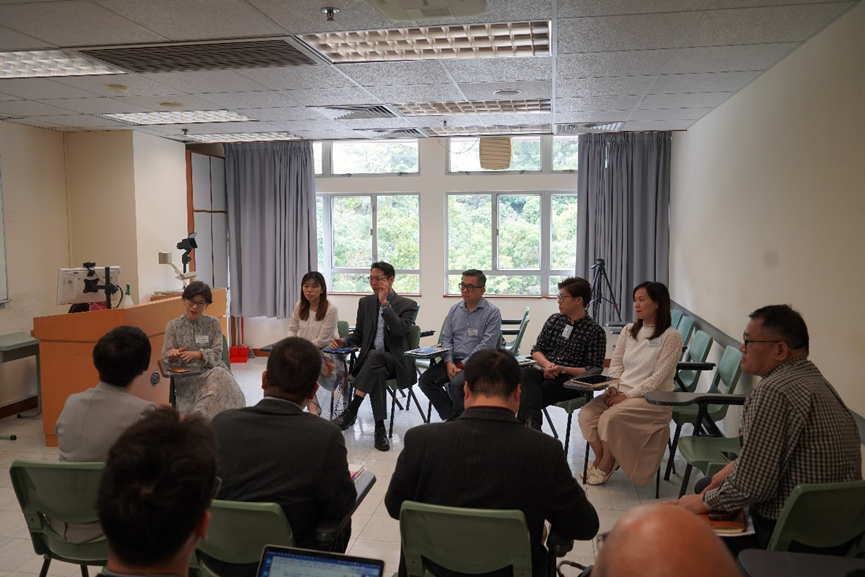 在香港中文大学,优质学校改进计划(Quality School Improvement Project,QSIP)总监陈鸿昌博士、吕斌博士、梁承谦博士、李敏明老师等相关成员对团队到来表示了热烈欢迎。吕斌博士详细介绍了香港中文大学优质学校改进计划(QSIP),梁承谦博士做了“从有到好:优化教学设计与教学方法”主题介绍,李敏明老师从教师推进角度介绍了非遗文化如何融入学校课程。查颖教授作了题为“一校一品,多方联动,以点带面,教育共富——浙师大田家炳德育研究中心推动区域学校德育建设的实践探索及成效”的专题报告。会后,双方就项目推进的差异性和共同点进行了深入探讨。