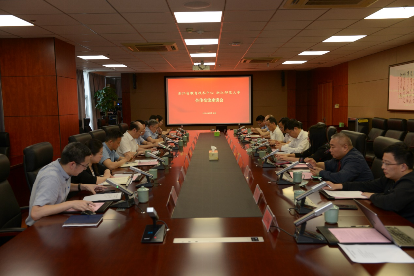 5月20日,浙江师范大学党委书记蒋云良带队赴浙江省教育技术中心调研交流,全省重点实验室常务副主任、浙师大教育学院院长黄晓,副主任朱信忠、李明,技术委员会常务副主任郑忠龙、副主任黄昌勤等陪同调研。