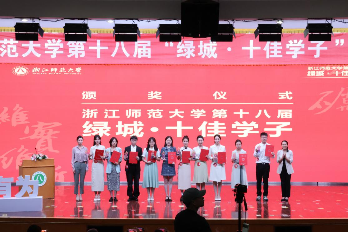 5月24日,浙江师范大学第十八届“绿城·十佳学子”现场评审会在大学生活动中心二楼报告厅隆重举行。经过激烈角逐,最终我院2022级硕士研究生朱玲林荣获第十八届“绿城·十佳学子”,2020级本科生施懿、2021级本科生张铭姿入选第十八届“绿城·十佳学子”提名奖。