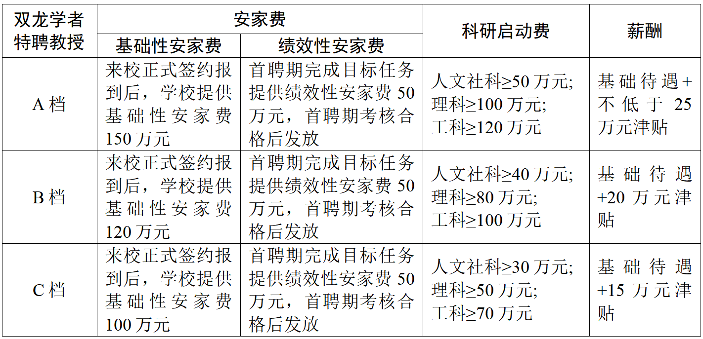 1.5特别优秀的青年博士应聘“双龙学者”特聘教授,需提供原创性强、影响力大的代表作5篇,薪酬待遇参照C档;