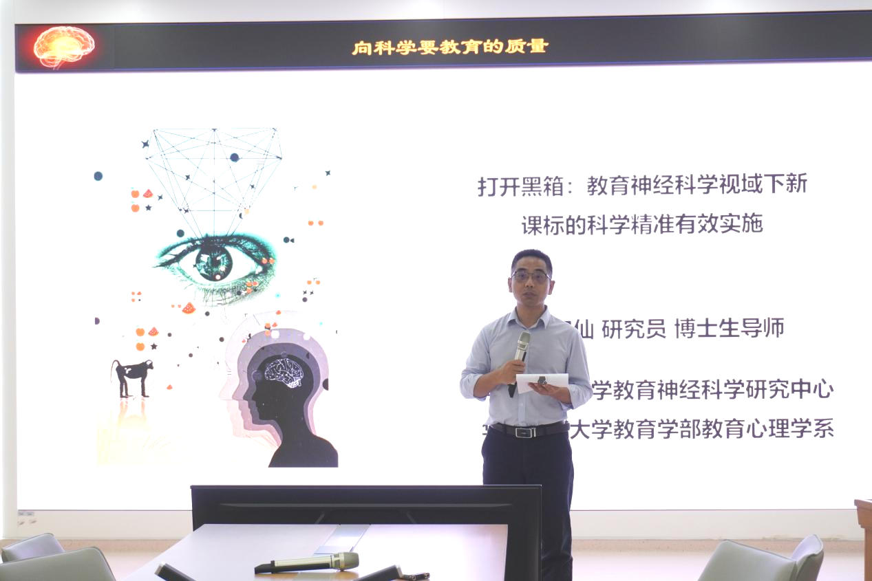 6月19日,华东师范大学教育学部研究员、教育神经科学研究中心副主任周加仙教授应邀做题为“打开黑箱:教育神经科学视域下新课标的科学精准有效实施”的学术讲座。40余位师生参加讲座,教育学院副院长王良辉教授主持本次讲座。