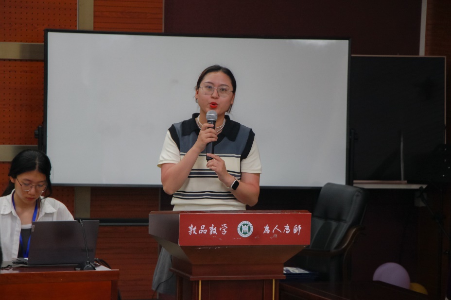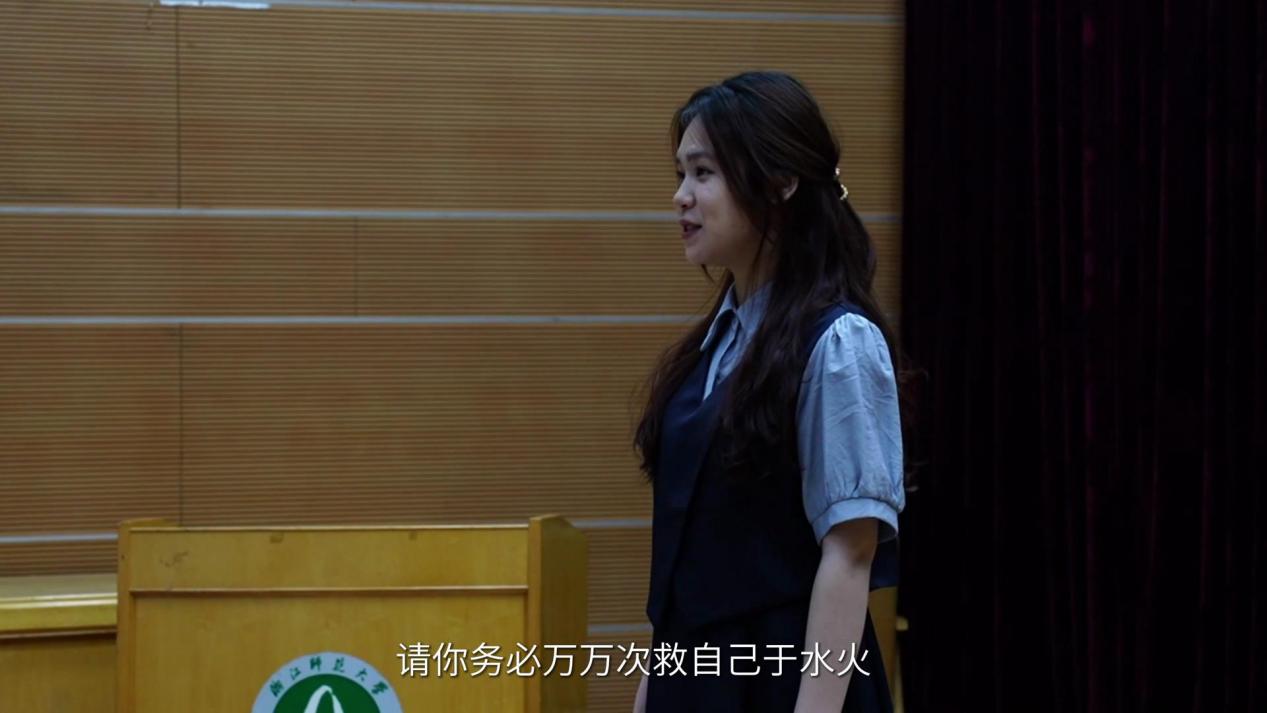 活动尾声,校心理中心厉佩淇老师结束致辞。首先,她感谢教育学院有特色、重心意、负责任的承办工作,高度赞扬了决赛现场展演方式与最终呈现效果。其次,她肯定所有参赛选手的努力与巧思,在关注参赛作品呈现治愈人心的功效的同时,鼓励同学们重视创作过程的意义。最后,她为同学们讲解大赛举办的初衷:“从自身找到解决问题的力量”,希望心理短视频传达的情感能够鼓舞大家逐步培养出探索美好世界的能力、发掘自我本源的力量,并用发现的眼光找到现实心理问题,用积极的姿态实现自我疗愈。