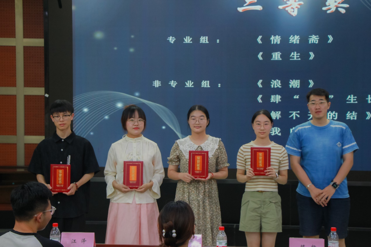 在初赛环节,全校学生踊跃参与、积极投稿,共有20份心理剧短视频稿本入围决赛,展开短视频拍摄。在决赛现场,全部拍摄完成的19个视频作品以现场放映与主创代表讲解相结合的形式依次展示,决出专业组、非专业组奖项以及六项米兰花奖。创作团队飞扬灵感,参赛作品精彩纷呈: