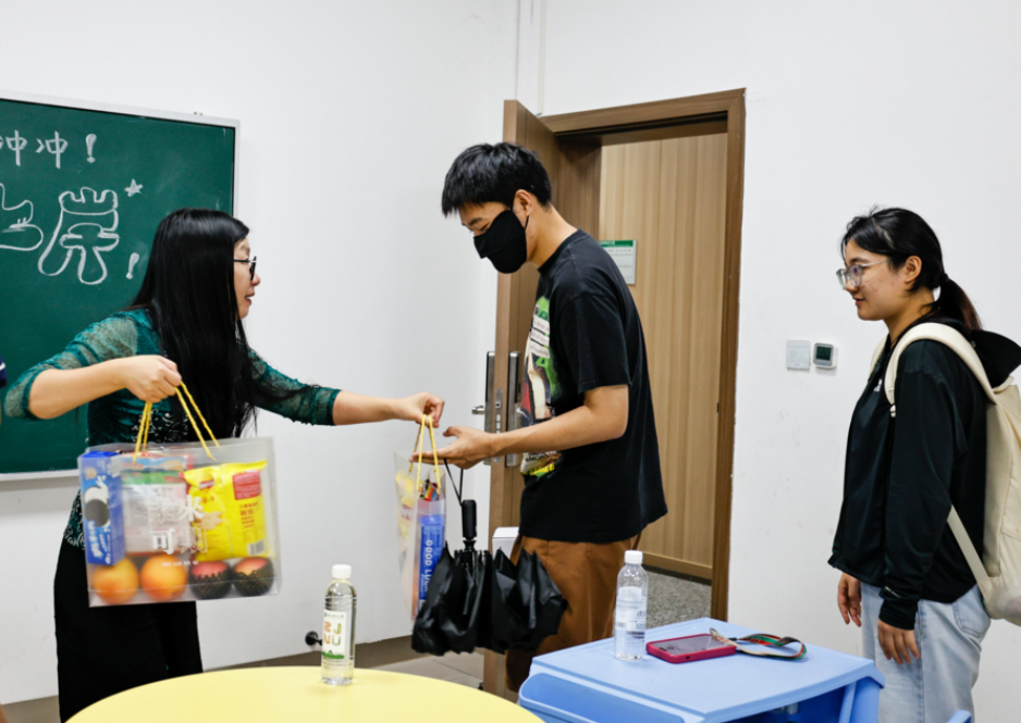 学院领导和老师们为同学们送上了考研加油大礼包,叮嘱其认真备考的同时要注意身体健康,劳逸结合。